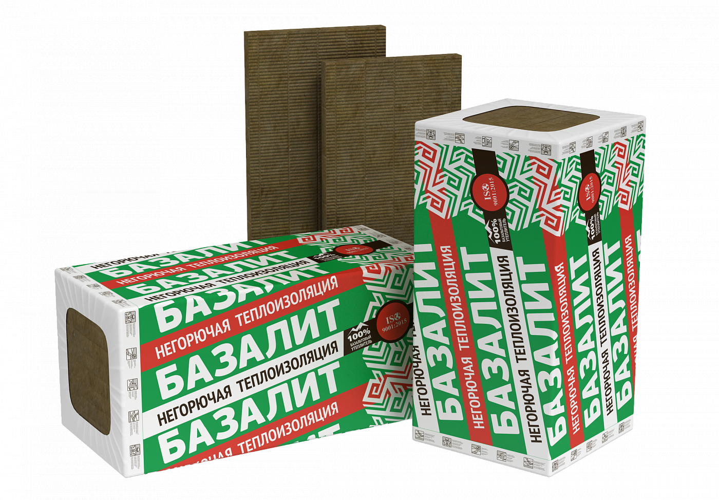 БАЗАЛИТ ПТ 150 – негорючие плиты из каменной ваты для тепло-, звукоизоляционного слоя в системах навесных вентилируемых фасадов, а также в качестве тепло-, звукоизоляционного слоя в плоских кровлях.